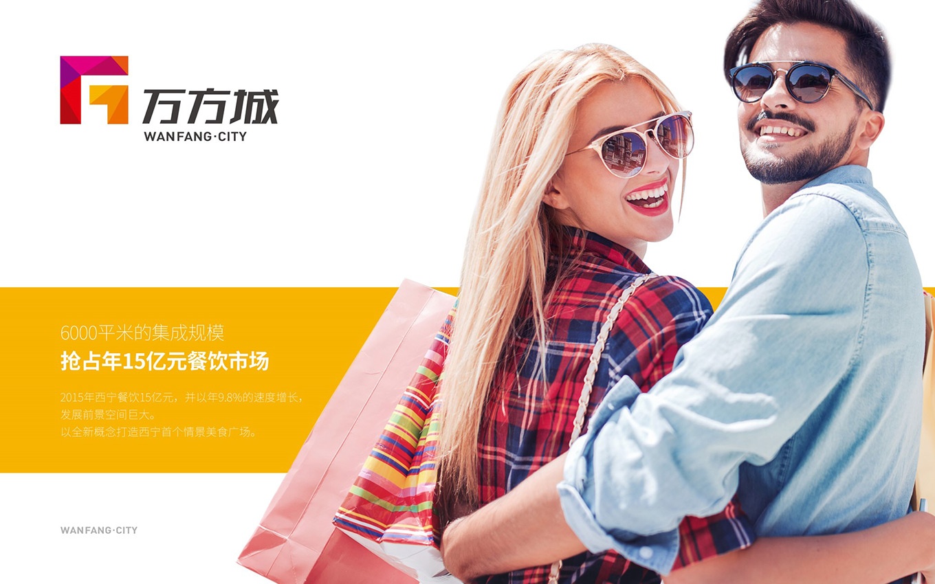 萬方城由青海萬方實業有限公司投資興建,是一個集商業、住宅為一體的項目。它是由由青海萬方實業有限公司開發,整個項目總占地約2.6萬平米,總建面約20萬平米。商業部分將會是一座大型的購物中心,設有多元化的零售商店、不同風味的餐飲及娛樂休閑設施,為消費者提供一站式、全方位的吃喝玩樂新天地;而寫字樓規劃為本地的地標性建筑。本次合作,uci聯合創智為萬方城提供了商場vi設計。